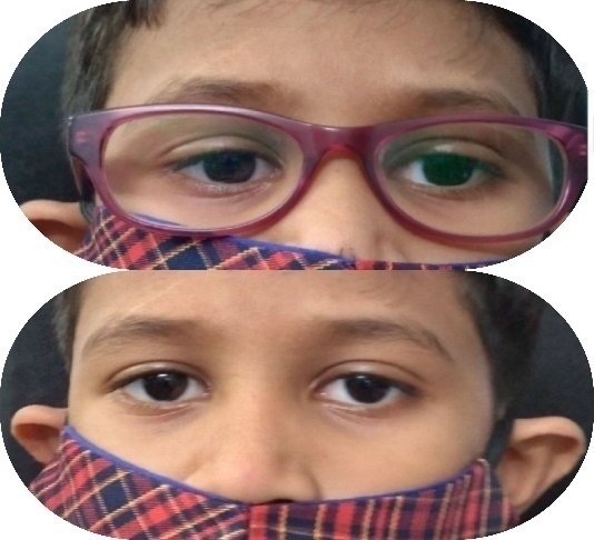 Figure:2(a) -Patient B 6 months before with straight eyes: 2(b) – Patient B (Class X student with 8 hours/day of online classes on smart phone); with basic type esotropia Left eye before and straight eyes after surgery